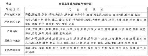 根據我國氣候特點,我國共劃分為寒冷地區、嚴寒地區、夏熱冬冷、夏熱冬暖四個地區。這四個地區的代表城市見表2。
