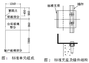 2.2、幕墻單元在專業加工廠組合成形,現場安裝組成幕墻,安裝時每單元以一點與支架基礎固接,單元周邊以搭接、插接方式拼合,上下相扣,首尾相銜,保證幕墻單元在各種情況下的穩定。