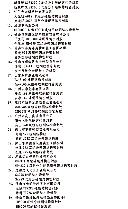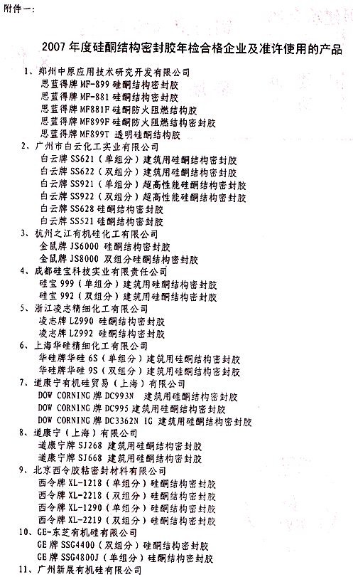 2007年建筑用硅酮結構密封膠產品合格準許使用通知
