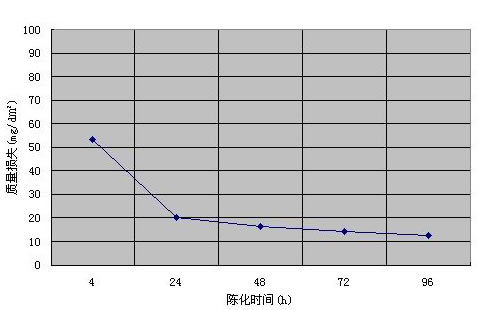 用冷封孔工藝進行陽極氧化膜的封孔,封孔之后立即測定封孔質量一般來說往往達不到國家標準的要求,需要放置一段時間后才能進行檢測。在陽極氧化膜封孔之后的一段時間內,隨著放置時間的延長,檢查封孔質量時其質量損失將會慢慢減少,而當達到一定時間之后,隨著放置時間的延長其質量損失變化很小,漸漸趨于穩定狀態。這種現象稱為冷封孔的陳化效應。