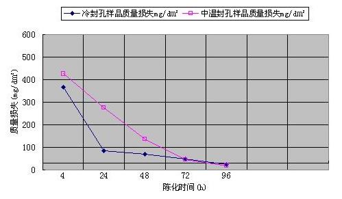 有色金屬研究總院早在“七五”攻關的時候,對冷封孔后封孔質量△W(mg/dm