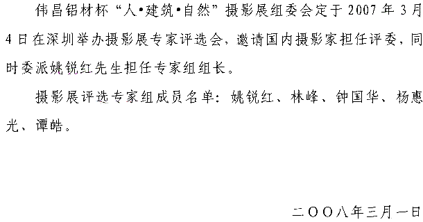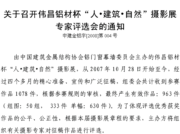 偉昌鋁材“人·建筑·自然”攝影展專家評選會通知