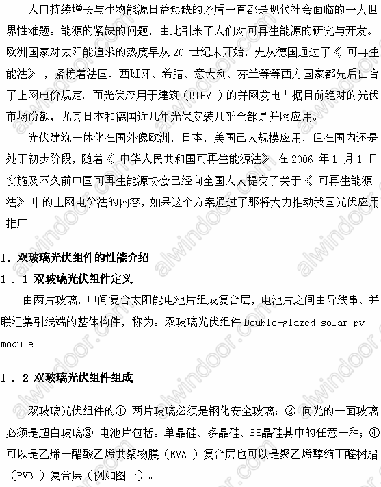 Abstract: Along with the “People’s Republic of China Renewable Energy Law,” implemented in 2006, then photovoltaic industry gradually infiltrate to the construction industry. The artivle introduced the integration of BIPV product ---double---glazed solar PV modules and made some suggestions to raise the BIPV photovoltaic industry.