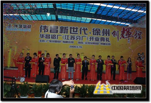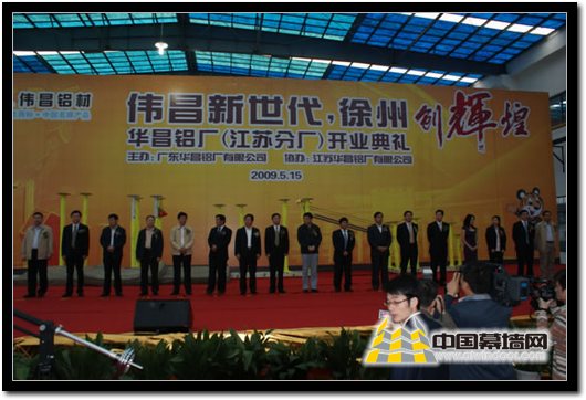 5月15日,江蘇華昌鋁廠有限公司一期開業典禮暨二期工程動工儀式在江蘇徐州沛縣鋁材工業園盛大舉行。項目總投資5個億,建成后總面積為300多畝。已經投產的一期即擁有世界先進水平的同水平密排熱頂鑄造熔鑄生產線2條,14條擠壓生產線,4條氧化、電泳生產線,1條英國進口的噴涂生產線及1條隔熱型材生產線。代表了當今鋁材生產的先進水平,可生產各種門窗,幕墻及工業型材等數千個品種,此次二期工程的開工更是受到地方領導、行業專家、權威媒體的多方關注。