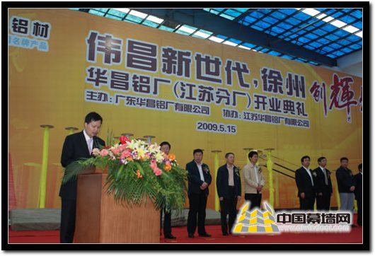 典禮現場,華昌公司董事長潘偉深先生表示說:“隨著經濟的發展和國內需求的不斷增加,為適應新的形勢發展需要,充分滿足客戶需求。在沛縣政府提供的良好投資環境下,華昌集團克服經濟危機帶來的不利影響,在一期工程建成投產開業之際,再次擴大生產規模、完善生產設備、豐富產品品種,為實現占據南北鋁材市場的宏觀目標,打下堅固的基礎。”