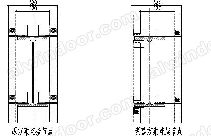 橡膠墊。但是在鋁板格柵放線完畢后發現,鋼結構水平方向的偏差遠遠超出了該系統的設計值,為此鋁板格柵系統的龍骨系統做出了調整,把龍骨在與鋼結構干涉部位斷開,使系統的調節量由原來的10mm提高到60mm,基本解決了主體結構偏差位移帶來的影響(如圖22)。