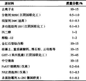 基料:GHT-1苯丙乳液,江陰國聯(lián)化工公司:功能性顏料:金紅石型