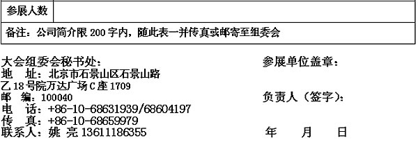 會務費:參展代表每人1000元人民幣。(用于會議資料、午餐、紀念品等)