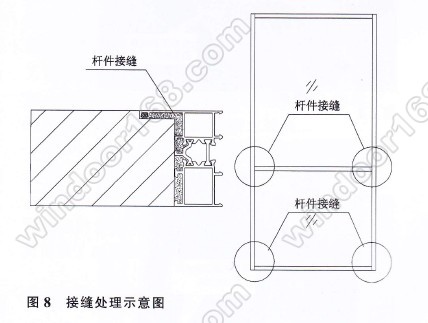 加工門窗時,尤其要對豎向通長的桿件接縫部位進行密封處理,要對每塊玻璃下部的桿件兩端接縫進行密封處理,因為水總是向下流的。