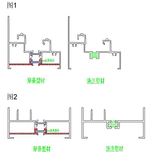 澆注、穿條兩種鋁型材的圖例對比