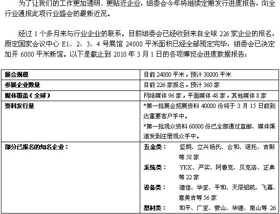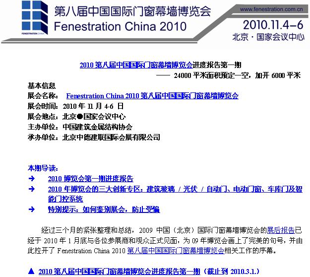 2010第八屆中國國際門窗幕墻博覽會進度報告第一期