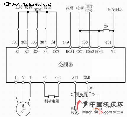 數(shù)控機(jī)床上使用的變頻器其頻率指令和運(yùn)行指令都來源于CNC控制器,一般給定的的通道有兩種,一種是模擬量給定,另一種是多段速給定,或者兩者同時(shí)給定,以多段速優(yōu)先。模擬量給定以電壓型模擬量為主,也有電流型的。變頻器對(duì)這兩種類型的模擬量都可以采集。