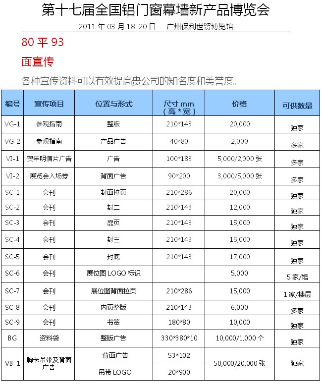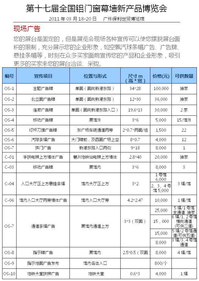 點擊下載>>第十七屆全國鋁門窗幕墻新產品博覽會——廣告清單.DOC