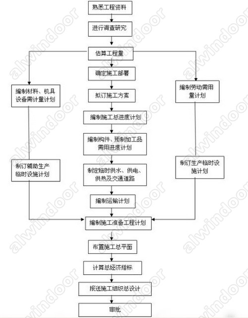 施工組織總設計是以工程建設項目的大小為對象進行程序計劃。可按圖1-1 所示。