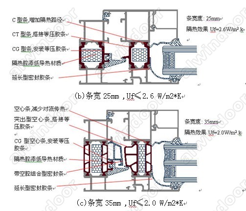 (4) 采取其他輔助措施:如在隔熱腔內添低導熱的泡沫,采取加肋式隔熱條等