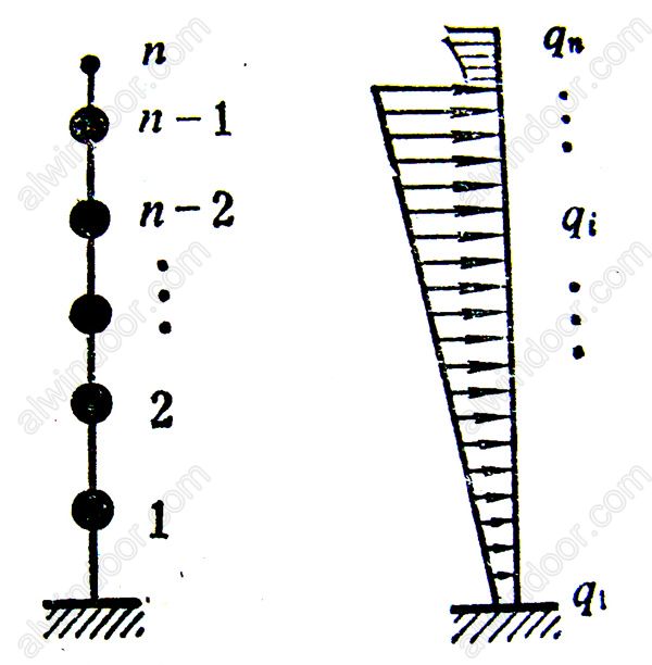 圖6 光伏結(jié)構(gòu)系統(tǒng)作為第n個(gè)質(zhì)量參加整體地震反應(yīng)分析,求出地震力.地震反應(yīng)計(jì)算可按國(guó)家標(biāo)準(zhǔn)《建筑抗震設(shè)計(jì)規(guī)范》GB 50009的規(guī)定進(jìn)行。