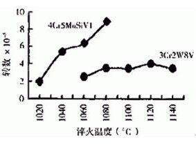 針對上述熱處理工藝,需要補充說明的是:由于4Cr5MoSiVI(H13)鋼對淬火溫度很敏感(見圖4),且在高溫下的淬火性能優良,所以應對其實行高溫淬火。