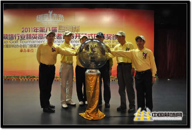 “堅朗杯”高爾夫球賽啟動儀式,領導嘉賓齊心協力,攜手將水晶球點亮