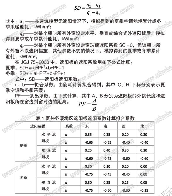 1. 引言 建筑遮陽已經得到了大量應用,建筑遮陽在調節建筑太陽輻射得熱量、調節室內熱環境和室內自然采光環境方面發揮的重要作用已得到廣泛認可。《民用建筑熱工設計規范》要求建筑物的向陽面,特別是東、西向窗戶,應采取有效的遮陽措施;《夏熱冬暖地區居住建筑節能設計標準》、《夏熱冬冷地區居住建筑節能設計標準》、《公共建筑節能設計標準》對門窗的遮陽系數提出了要求,并對外遮陽如何計算遮陽作用給出了計算方法;《綠色建筑評價標準》要求采取有效的遮陽措施,采用可調節外遮陽,調節室內光熱環境。 但是,對于遮陽裝置的遮陽效果,目前還沒有統一的評價方法。遮陽系數是建筑節能和空調計算中評價遮陽效果最關鍵的參數,但如何定義卻一直是問題國際上,在ISO15099 標準和歐洲標準EN13363-1 中給出了平行于門窗且完全覆蓋門窗的遮陽裝置的光學、熱工計算方法和計算公式。《夏熱冬暖地區居住建筑節能設計標準》和《公共建筑節能設計標準》提出了遮陽裝置遮陽系數的簡化計算方法和公式。行業標準《建筑門窗玻璃幕墻熱工計算規程》JGJ/T151給出了平行于門窗且完全覆蓋門窗的遮陽裝置的光學、熱工計算方法和計算公式。對于遮陽裝置視覺舒適度的評估計算,DINEN14500:2008給出了平行于門窗且完全覆蓋門窗的遮陽裝置的測試方法和計算公式。 建筑遮陽裝置的種類非常之多,形狀各異,各種遮陽裝置的計算評估都很重要,而且方法是否合適對遮陽的設計有著直接的影響,應該讓遮陽裝置有一整套完整、科學的計算分析方法,以便對遮陽裝置的工程效果進行評價。各個氣候區該如何應用遮陽裝置,各種遮陽裝置該如何選擇應用。對節能而言,怎樣應用遮陽裝置;在室內光熱環境方面,如何應用遮陽裝置;如何解決遮陽與采光的矛盾,等等。這些問題都應該得到完整的回答,從而使得建筑設計師們可以對各種遮陽裝置有比較清晰的認識,便于在建筑設計中靈活應用。 建筑遮陽產品也隨著建筑遮陽和調節自然采光的需要而得到了很大發展,出現了各種類型的百葉、遮陽簾、遮陽板等。這些產品因應用的需要而需滿足一些性能指標的要求,需要一些指標來衡量產品的好壞。所以,在建筑的節能和綠色建筑設計中,需要對這些性能指標有清晰的了解和把握,從而更好的應用這些產品為建筑服務,以使得建筑更加優秀。 2. 遮陽裝置遮陽和采光效果的計算方法 2.1 遮陽系數的定義 遮陽裝置的遮陽效果隨著太陽位置和天氣情況的變化而變化,在每時每刻都有不同的遮陽系數。在某一時刻、某一太陽直射、散射分布下,“門窗的遮陽系數是門窗和遮陽裝置組合體的太陽能總透射比與無遮陽裝置的情況下該門窗的太陽能總透射比的比值”。 (1)用于建筑節能計算的遮陽系數 對于建筑節能而言,如果把遮陽裝置放到某個簡單的建筑物窗戶上,進行全年的能耗計算,根據采暖能耗和空調能耗在有遮陽和沒有遮陽前后的變化,就可以得到冬季和夏季兩個等效遮陽系數。這個遮陽系數可以作為用于建筑節能計算的(等效)遮陽系數。 (2)用于空調負荷計算的遮陽系數 空調負荷的計算需要對每個時刻都進行計算,而且一般采用晴天作為典型天。用于空調負荷計算的遮陽系數應根據需要進行逐時的計算,得到每個時刻的遮陽系數。用于空調負荷計算的遮陽系數不是一個數,有多少需要計算的時刻就有多少遮陽系數。 (3)遮陽產品給定條件的遮陽系數 為了遮陽產品性能的相互對比,各個產品標準中往往規定一定的太陽方位角、高度角,以及太陽光的直射散射比例,從而得到一類產品的準確遮陽系數。這個系數只能作為產品性能比較用,而一般不能直接用于實際工程計算。 2.2 遮陽裝置遮陽系數的計算 (1)用于建筑節能計算的遮陽系數計算 建筑節能計算的天氣數據一般采用標準氣象年。在一年的建筑節能計算中,外窗及其遮陽要進行逐時的計算,遮陽的效果也就進行了逐時的計算。如果要知道遮陽裝置的遮陽效果,必須同時還計算不采用遮陽設施時的建筑能耗,從制冷能耗的比較中得到夏季遮陽系數,從采暖能耗的比較中得到冬季遮陽系數。這種方法可以稱為“能耗計算法”。《夏熱冬暖地區居住建筑節能設計標準》JGJ75-2003中建筑遮陽的簡化計算公式就是采用這種方法獲得的。 基于能耗的外遮陽系數為采用外遮陽措施后建筑外窗太陽輻射引起的全年建筑能耗與無遮陽時建筑外窗太陽輻射的外遮陽系數引起的全年建筑能耗的比值。