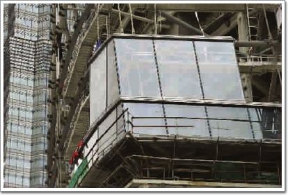上海中心大廈主樓外幕墻安裝今天上午正式啟動,這是世界上首次在