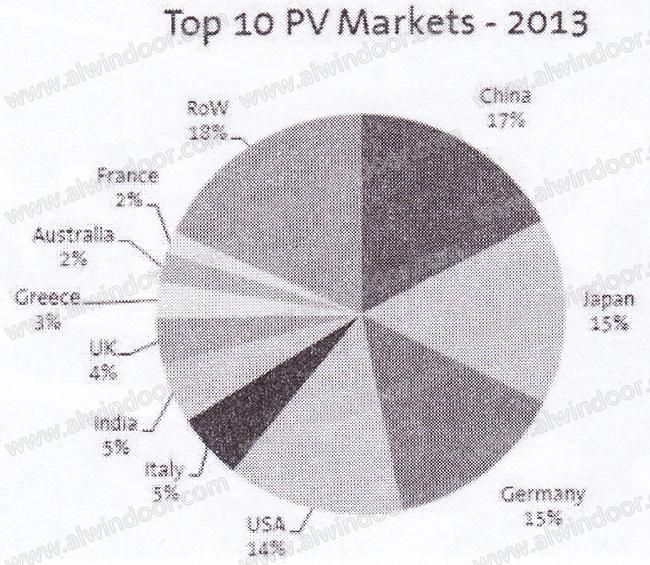 國外資料顯示:2012年全球光伏安裝量達(dá)31.4GW,較前一年提高14%。預(yù)計2013年全球光伏安裝量超過35GW,中國為17%,日本、德國分別為15%,美國為14%。印度、意大義分別為5%,英國為4%,希臘為3%,澳大利亞為2%,世界其它地區(qū)為18%。