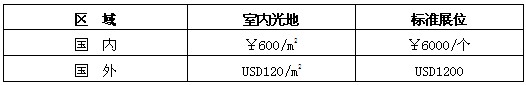 2.室內(nèi)光地:36平方米起租;光地不提供任何配置,由參展商自行布置;特裝展位需向場館交納場地管理費:20元/m2/展期。根據(jù)企業(yè)上報用電數(shù)量由場館進行用電費用收取。
