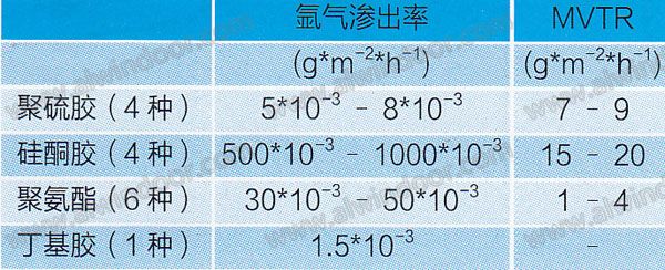 對于密封膠的氣密性評估(參見表2),(此方法通過測量氣體在一定時間內透過既定厚度和尺寸的膠層的值進行評估),在選擇最適宜的中空材料情況下,考慮所有其它因素對密封膠隨時間變化的影響,例如在特定的大氣和老化后的玻璃粘合性能,及機械應力。