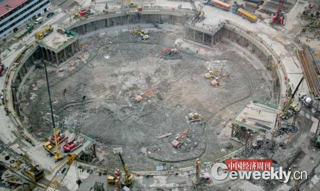 現場的一名工作人員向《中國經濟周刊》介紹,兩年多來,武漢綠地中心陸續實施挖坑、連續墻、工程樁、土方等工程,主體結構在2014年有望從地下“長”出地面,預計2017年完工。