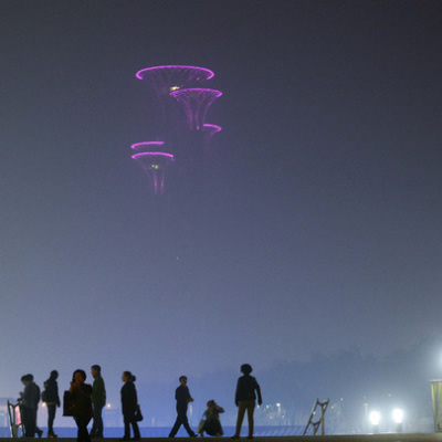 2014年10月,著名地標(biāo)北京奧體公園246米高“釘子塔”隱在空中。