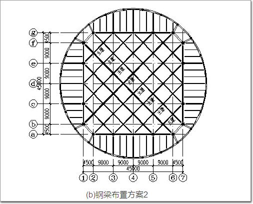 圖8 45m大跨度樓蓋結(jié)構(gòu)布置方案