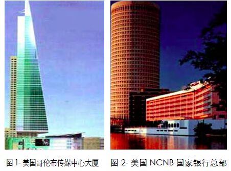 設(shè)計主題在接近行人的裙房,尤其是面對哥倫布圓環(huán)的大面積弧形墻面部分表現(xiàn)充分。集人類有史以來傳媒形式之大成。大廈集商業(yè)、辦公、居住、娛樂于一體,面積20 多萬平方米,梭形主體大樓63 層,下部辦公空間,上部為居住公寓。哥倫布圓環(huán)的群房在正對59 街口處向內(nèi)凹進,成為曼哈頓美國NCNB。