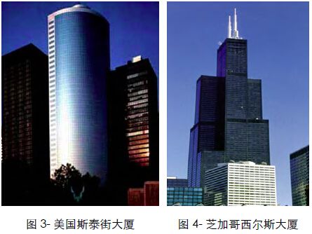 其比貿(mào)易中心高32m,被劃為9 個不同高度的小正方形,在外觀上就象由九個不同高度的方柱體集合而成。這座鏡面玻璃幕墻高層建筑,以傳統(tǒng)的磚石建筑面貌出現(xiàn),其塔身和頂部都具有古典意味,寬闊的基座高五層,上部逐漸收縮,具有二十年代摩天樓中的新古典藝術(shù)裝飾派風(fēng)格。這種運用現(xiàn)代材料追求舊形式的設(shè)計方法,使過去與現(xiàn)在聯(lián)系了起來,并賦于傳統(tǒng)形式以新的特色和時代感。