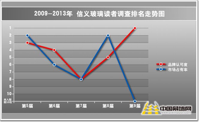 圖5:2009-2013年信義玻璃控股有限公司讀者調查排名走勢圖