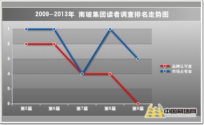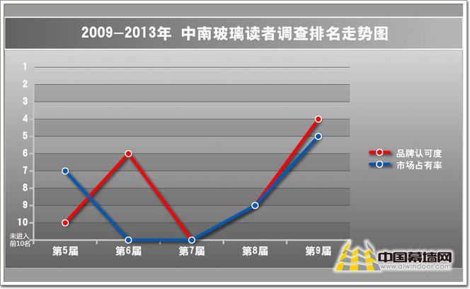 圖6:2009-2013年佛山市中南玻璃有限公司讀者調查排名走勢圖