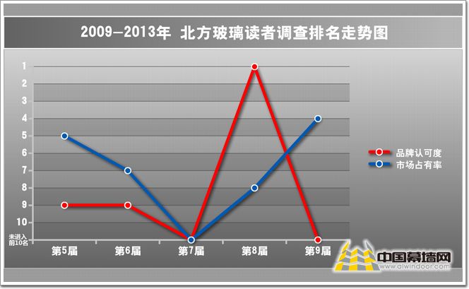 圖3:2009-2013年廣東金剛玻璃科技股份有限公司讀者調查排名走勢圖