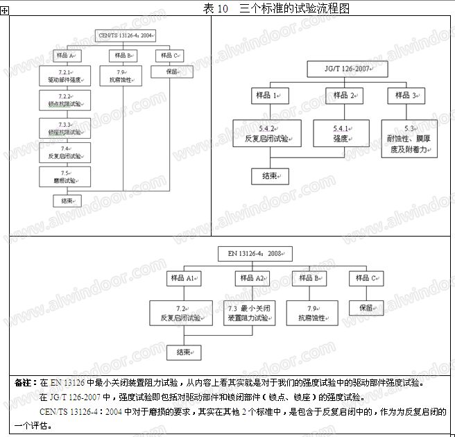 CEN/TS 13126-4:2004、EN 13126-4:2008與JG/T 126-2007相關性能項要求的如表8所示: