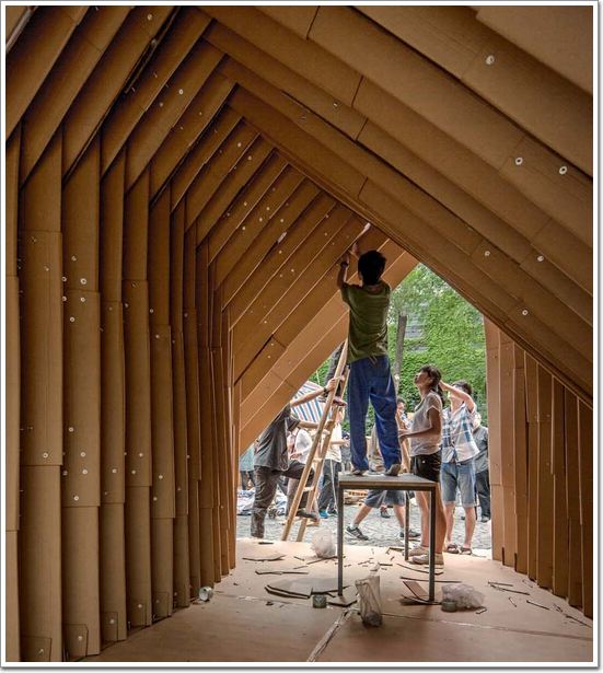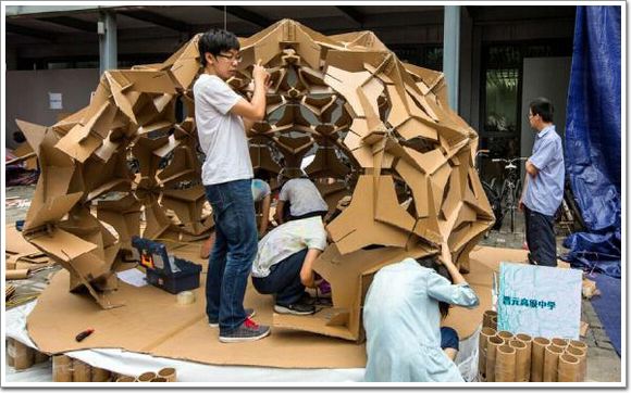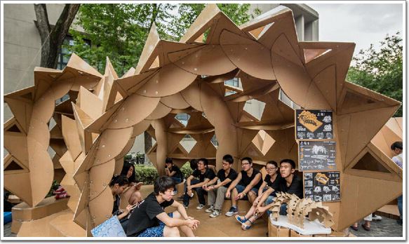 這是一個充滿挑戰(zhàn)而又激發(fā)熱情的建筑設(shè)計競賽。 隊員們除了需要創(chuàng)新和超越以往歷屆的設(shè)計,還要有計劃地安排團(tuán)隊任務(wù),在一天里共同建造出充滿創(chuàng)意的紙板建筑。