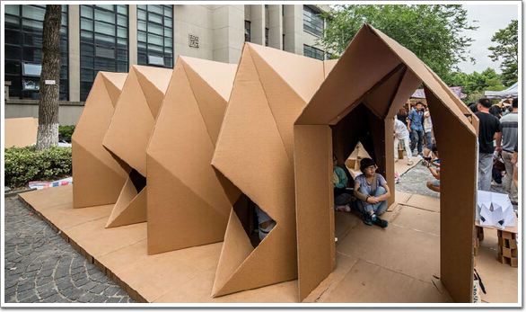 競賽規(guī)則為 每個隊發(fā)60張1米95長 1米5寬 7毫米厚的瓦楞紙板和相關(guān)螺絲。 各個隊需要通過對于材料性能的認(rèn)識,發(fā)揮想象力,建造出有內(nèi)部使用空間的紙板建筑。 大學(xué)生隊的房子建筑面積為12平米, 中學(xué)生隊的為5平米。