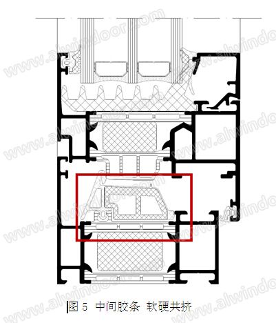 氣密層:正風(fēng)壓的情況下,中間膠條的鴨嘴會(huì)貼緊CT型隔熱條,起到氣密層的作用。