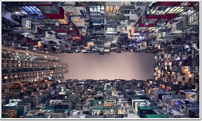 這是法國藝術家 Romain Jacquet-Lagreze 在香港所拍攝的名為“垂直于地平線”的一組創意攝影作品,容易讓人產生暈眩的建筑攝影,Romain用一組獨特的視角去審視那些高聳的建筑,他用自己的方式表達出對這個城市的感受,看了他的作品你會感覺自己就如同坐在天井中觀天的青蛙一般。