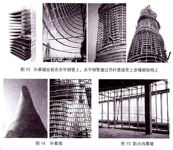扭轉建筑最早出現在瑞典,這座高層住宅樓給人留下深刻的動感形象(圖50),此后扭轉樓便在各地興建,其中最為有名的是加拿大多倫多的夢露大樓,模仿好萊塢明星瑪麗蓮夢露的優美舞姿維肖微妙(圖51⒈ 圖52迪拜無限塔和圖54科威特哈馬拉大廈具有明顯的扭轉雙曲面,幕墻施工難度很大,均由我國的幕墻公司完成。我國在廈門和深圳也建成了類似的扭轉大擻圖55、圖56)。