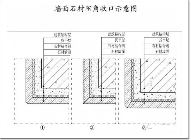 2、墻面石材陽角收口均需45度拼接對角處理;待墻面石材全部鋪貼完成后,須調制與石材同色的云石膠作勾縫處理,勾縫必須嚴密。