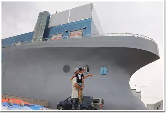 濟南街頭現“航母”大樓