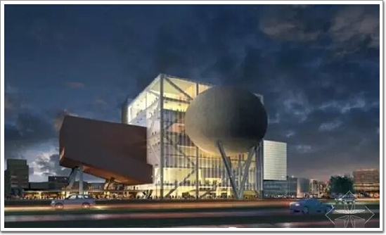 即將開業的臺北藝術中心以方型建筑為主體,支撐漂浮在半空中的巨大圓形球體,設計非常新穎。