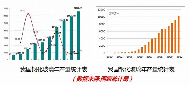 我國鋼化玻璃累計用量超過20億平米,用于玻璃門窗幕墻上的建 筑玻璃超過10億平米,生產和使用均超世界一半以上。