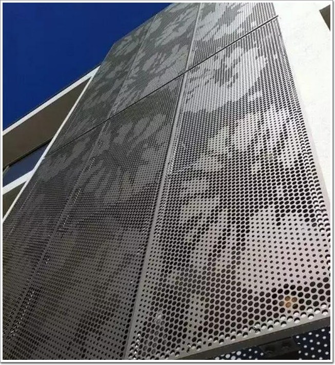 穿孔板原名沖孔板,在不同材質的板材上打孔形成。材質多為不銹鋼板、鋁板、鐵板、銅板等等,工藝上不同的金屬板通過不同的剪裁達到合適的尺寸,在數控機床上進行穿孔,以獲得理想的圖案效果。