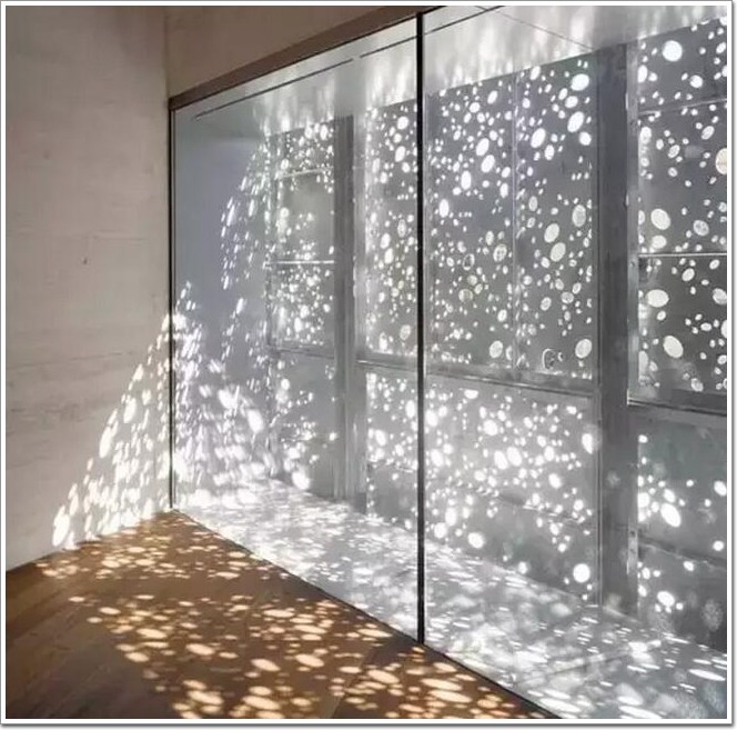 穿孔板將材料與肌理控制得細致入微,通過大小不同的穿孔和疏密的變化,甚至可以呈現出具體圖案的效果。