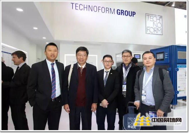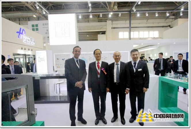 中國建筑金屬結(jié)構(gòu)協(xié)會鋁(詞條“鋁”由行業(yè)大百科提供)門窗幕墻委員會專家、蘇州市建筑金屬結(jié)構(gòu)協(xié)會總工程師潘元元先生(左二)蒞臨泰諾風(fēng)展臺