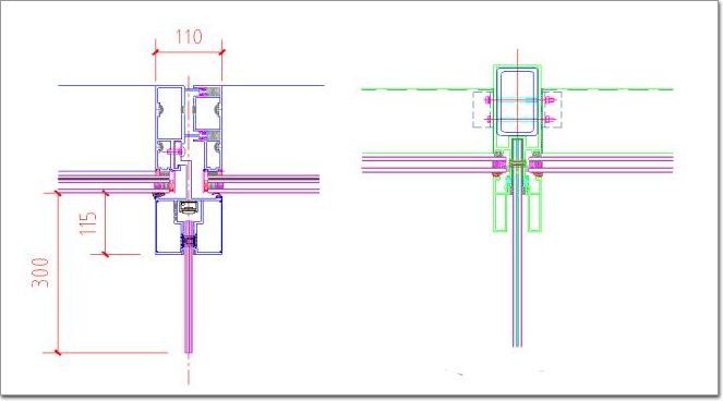 寫字樓單元式幕墻系統(tǒng): 裙樓框架式幕墻系統(tǒng):