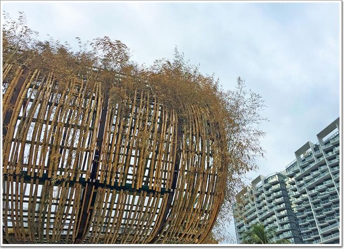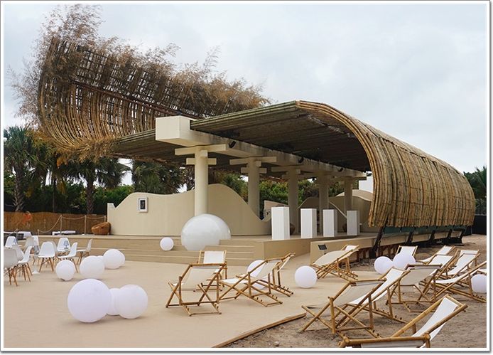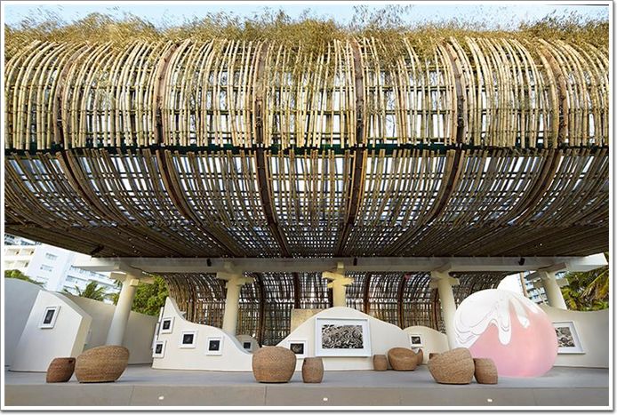 彎曲的屋頂由1300根竹條搭建而成,屋頂位于介于21號街、22號街以及邁阿密海灘之間的海邊空地上。竹條地從地面向天空呈S形溫柔延伸,形成一個溫馨的展區。黃昏后,燈光照亮這里,溫和的色調溫暖著每一根竹子,反佛一座海灘和遠方的燈塔。藝術家描述作品說:“我從自己多年的創作經驗中尋找靈感,通過與100多名藝術學生團隊的合作來實現該藝術作品,我很高興,只是經過短短一年,作品已經從圖紙變成真正存在的實物作品。”